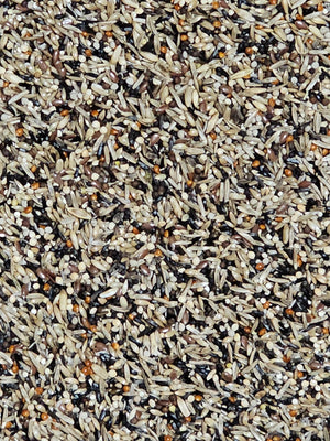 Canary seeds, Health grains, Nigerseed, Chicory, White perilla Hemp seeds, Red foxtail millet, Sesame seeds, Hulled oats, Orchard grass seeds, Turnip seeds, Black lettuce seeds, White lettuce seeds, Red millet, Brown perilla, Blue poppy seeds, Red and black wild turnip, Wild tistle.